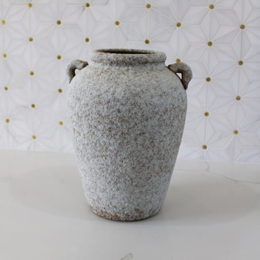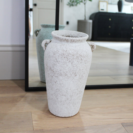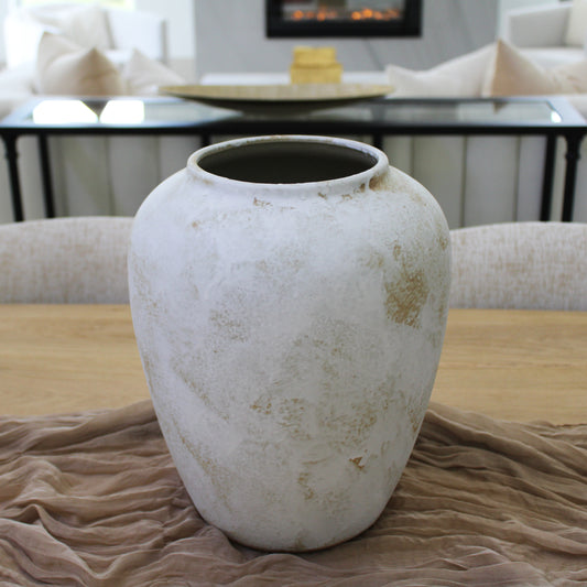 Elegant Cottage Mykono Handmade Vintage Terracotta Vase, Rustic Farmhouse Pottery White Washed Brush Stroke Vase