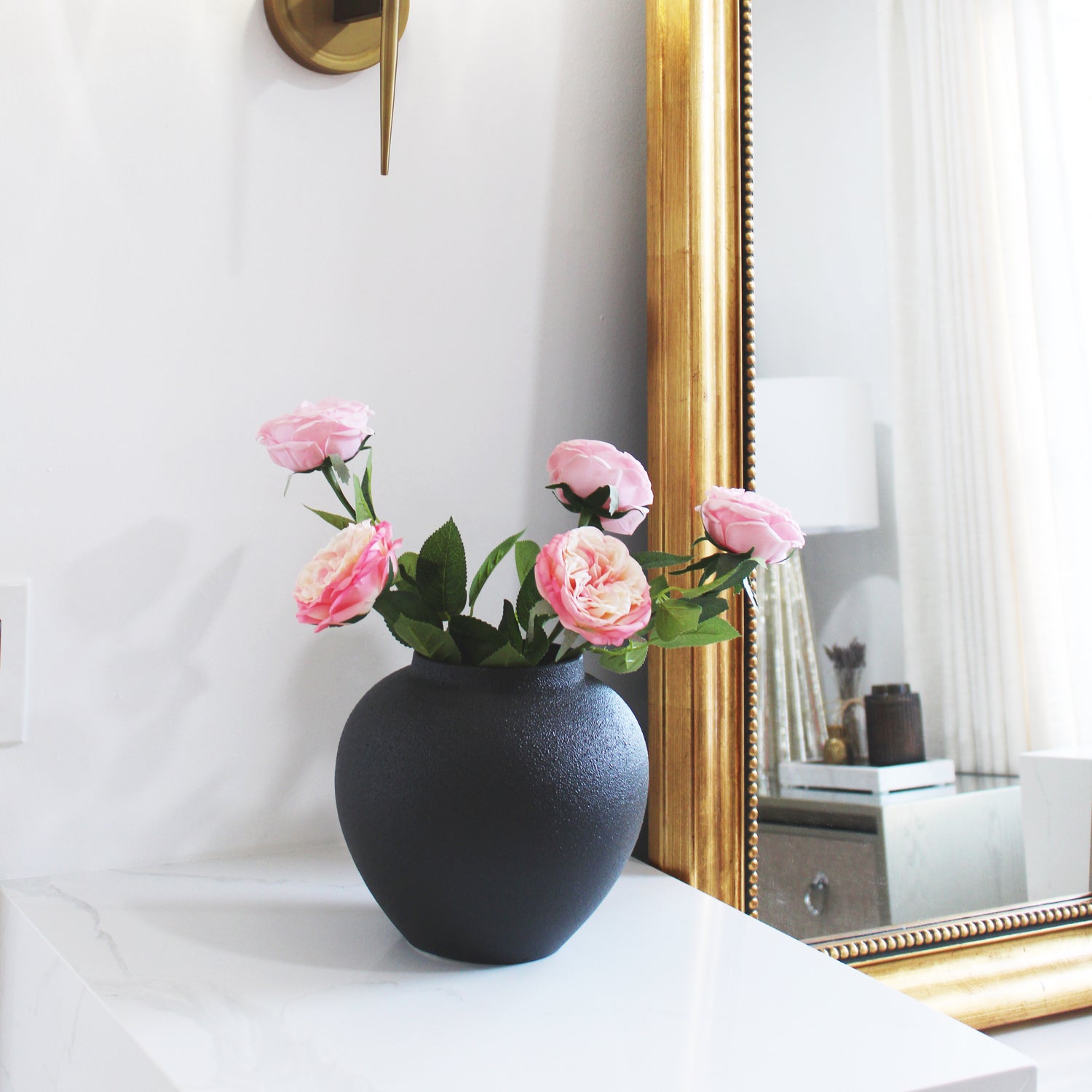 Elegant Cottage Sophia Handmade Vintage Vase, Shelf Decor vase, Rustic Pottery,Decorative Flower Vase for Home Decor, Textured Black Vase