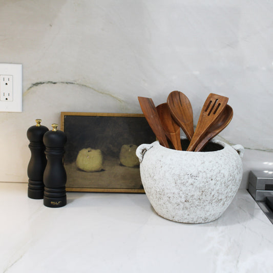 Elegant Cottage Ophelia Handmade Vintage Vase, Rustic Pottery,Decorative Flower Vase,Grey Textured Cement Vase Small Wide 10.5 L X 10.5 W X 7 H